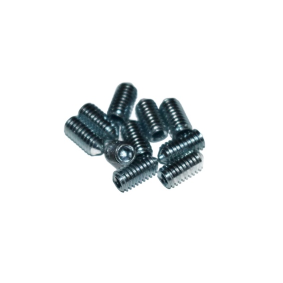 Wkręt dociskowy M4x8 z końcem stożek ocynk biały 10 szt. Śruba dociskowa.